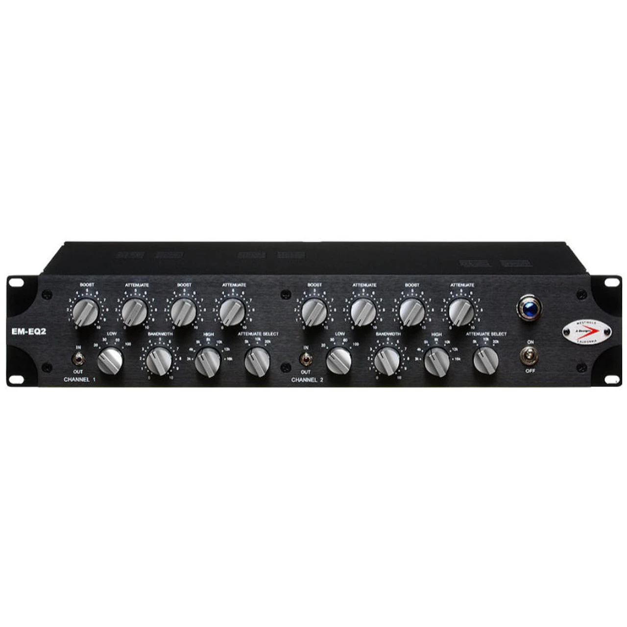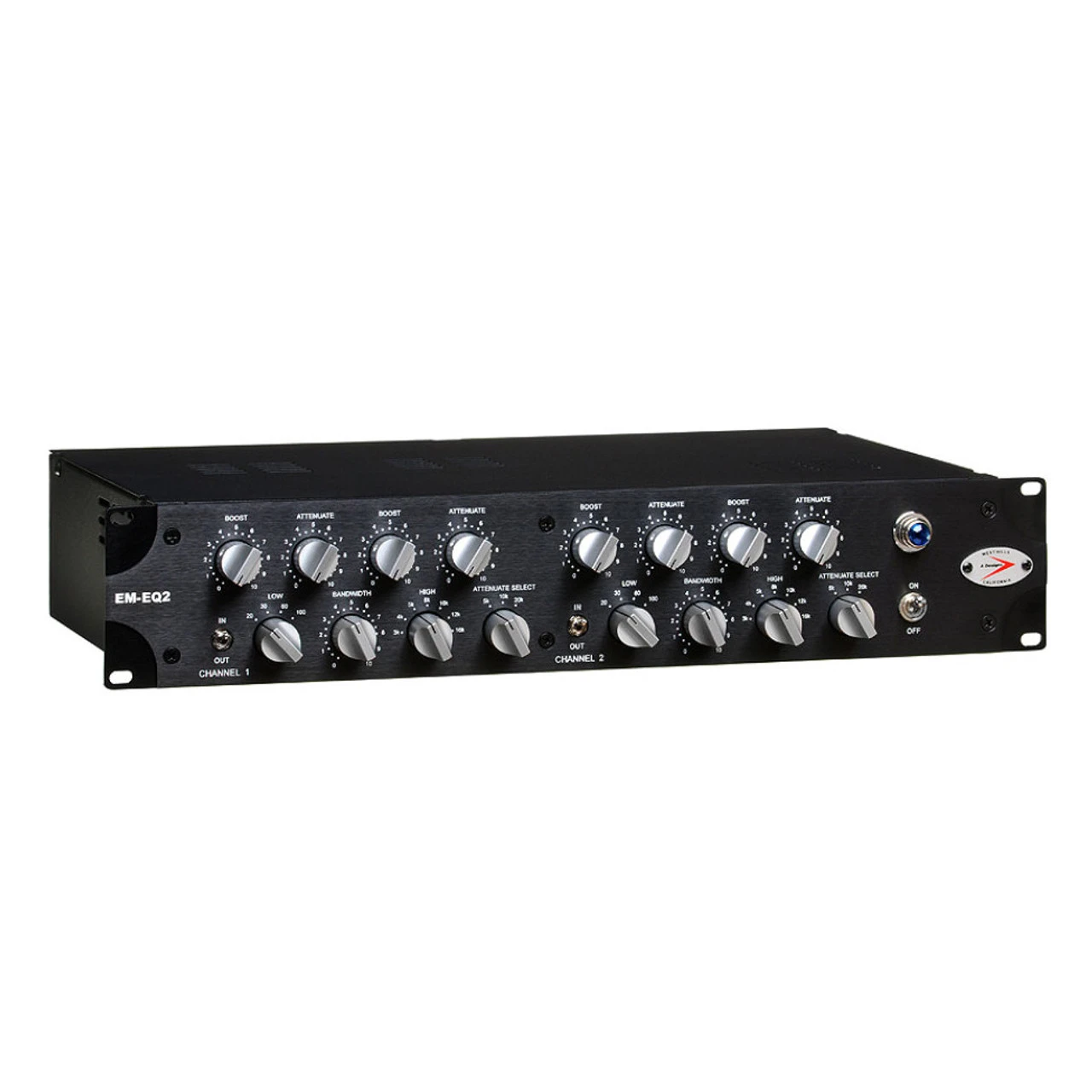 Many engineers and musicians would love to own an original Pultec EQP-1 equalizer, but the simple truth of audio equipment is that – unlike violins and brandy – electronics don’t improve with age. Even if you can find one on the vintage market that’s in decent shape and fully functional, the exorbitant price tag can be somewhat preventative…and the maintenance a potential nightmare. The A-Designs Audio EM-EQ2 is the answer for those who want the stellar sound of a Pultec equalizer plus the added benefit of modern performance and reliability. The EM-EQ2 faithfully preserves the EQ section design, control layout, and wonderfully smooth musicality of the original Pultec. It also has the same frequency settings and inductors that made the Pultec a must-have for accurately capturing and shaping the sound spectrum, especially the bottom end. The high band is attenuated at 5k, 10k, 20kHz; bandwidth and boost can be varied mid to high band at 3k, 4k, 5k, 6k, 10k, 12k, 16kHz; and, of course, the low band can be boosted and/or attenuated at 20Hz, 30Hz, 60Hz, or 100Hz. Boost and attenuation can be adjusted from 0dB to ±10dB. Eminently suited for tracking, mixing, or mastering, the two-channel EM-EQ2 is housed in a rugged, metal 2U chassis. It shares the same custom-milled faceplate, brushed-aluminum control knobs, big jewel power indicator lamp, and heavy-duty Carling toggle switch as the A Designs Hammer (which compliments the EM-EQ2 perfectly). Additional features include a proprietary nickel-core Cinemag output transformer, Wima capacitors, and true hard bypass. Instead of using common off- the-shelf chokes, A-Designs Audio employs a Cinemag custom wound tapped inductor. Along with the classic EQ circuitry, layout, and exceptionally musical tone of the original Pultec, the EM-EQ2 offers fully balanced, noise-free performance and modern impedance specs, making it easy to integrate it into any environment.  Here’s the best part: with its dual-mono design, the EM-EQ2 gives you two Pultecs for a fraction of the price of one, making it easier than ever to add the Pultec magic to any project or professional recording studio or live rig.
