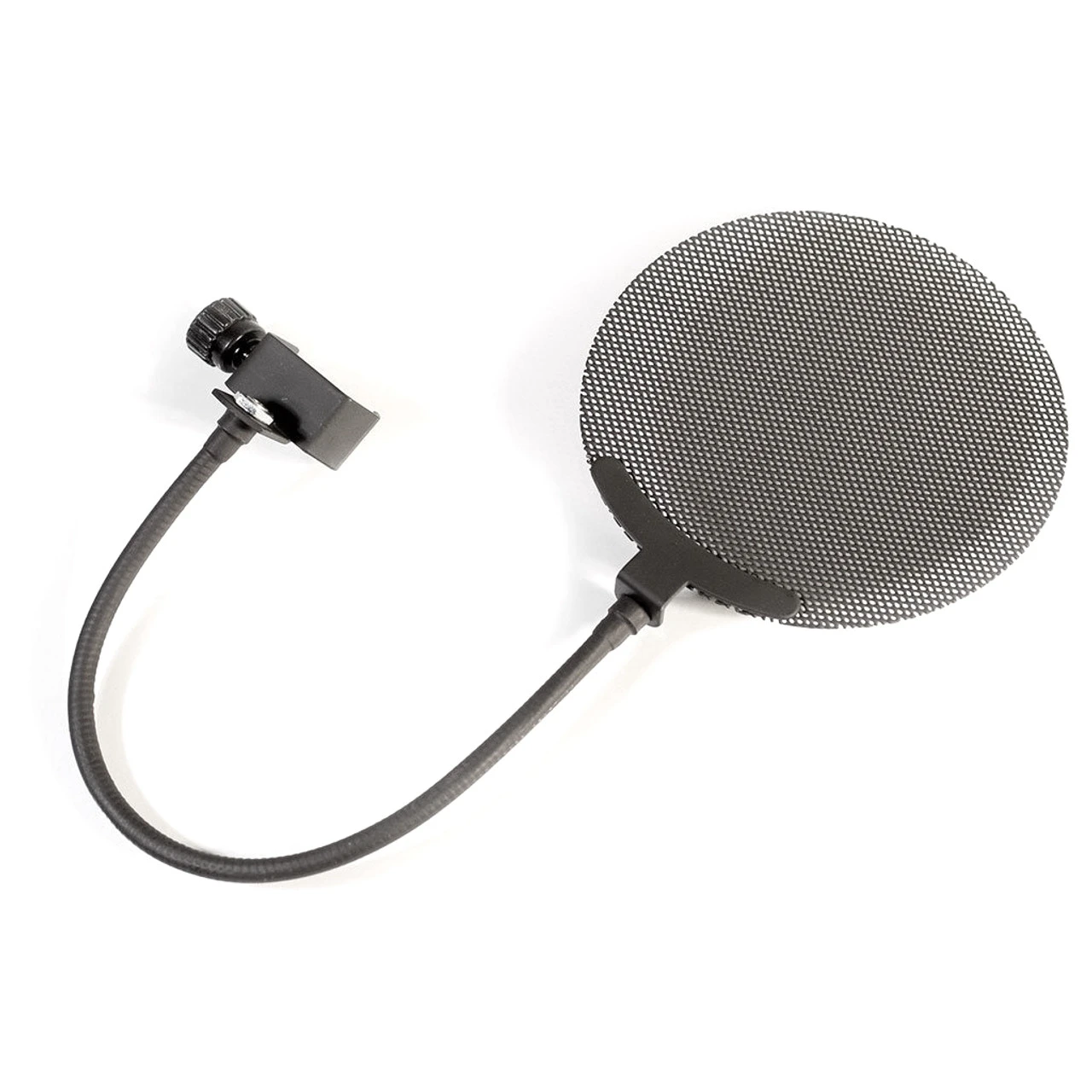 Louvered professional pop filter with gooseneck and twist on stand mount, perfect to keep those popping P’s out of your vocal tracks!