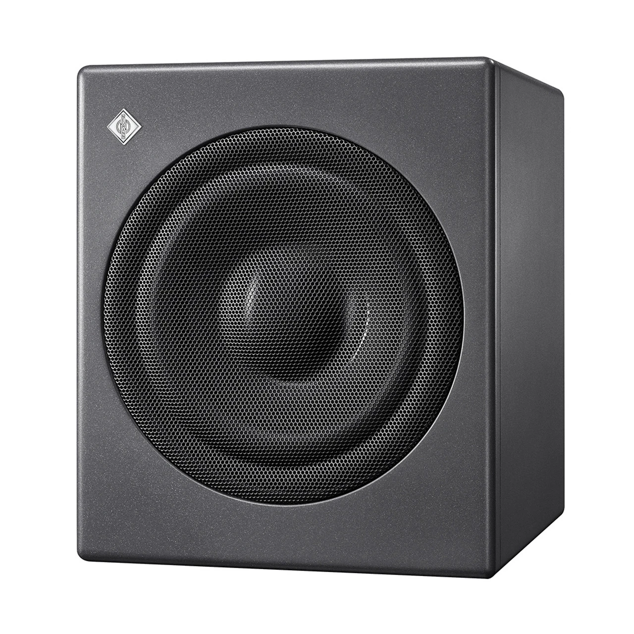 The newly designed 10” long-throw driver has a large magnet, linear motor design and a very stiff pressed steel basket. As subwoofers are usually placed on the floor, a robust grille protects the driver from accidental damage. The well-braced cabinet is a sealed designed which brings the fastest possible transient response. The two analog XLR inputs are balanced as are the two analog XLR outputs. The 192 kHz / 24-bit digital input can accept AES3 and S/P-DIF signals. There is a bypassable standby function and the switch-off time can be adjusted in Neumann.Control.