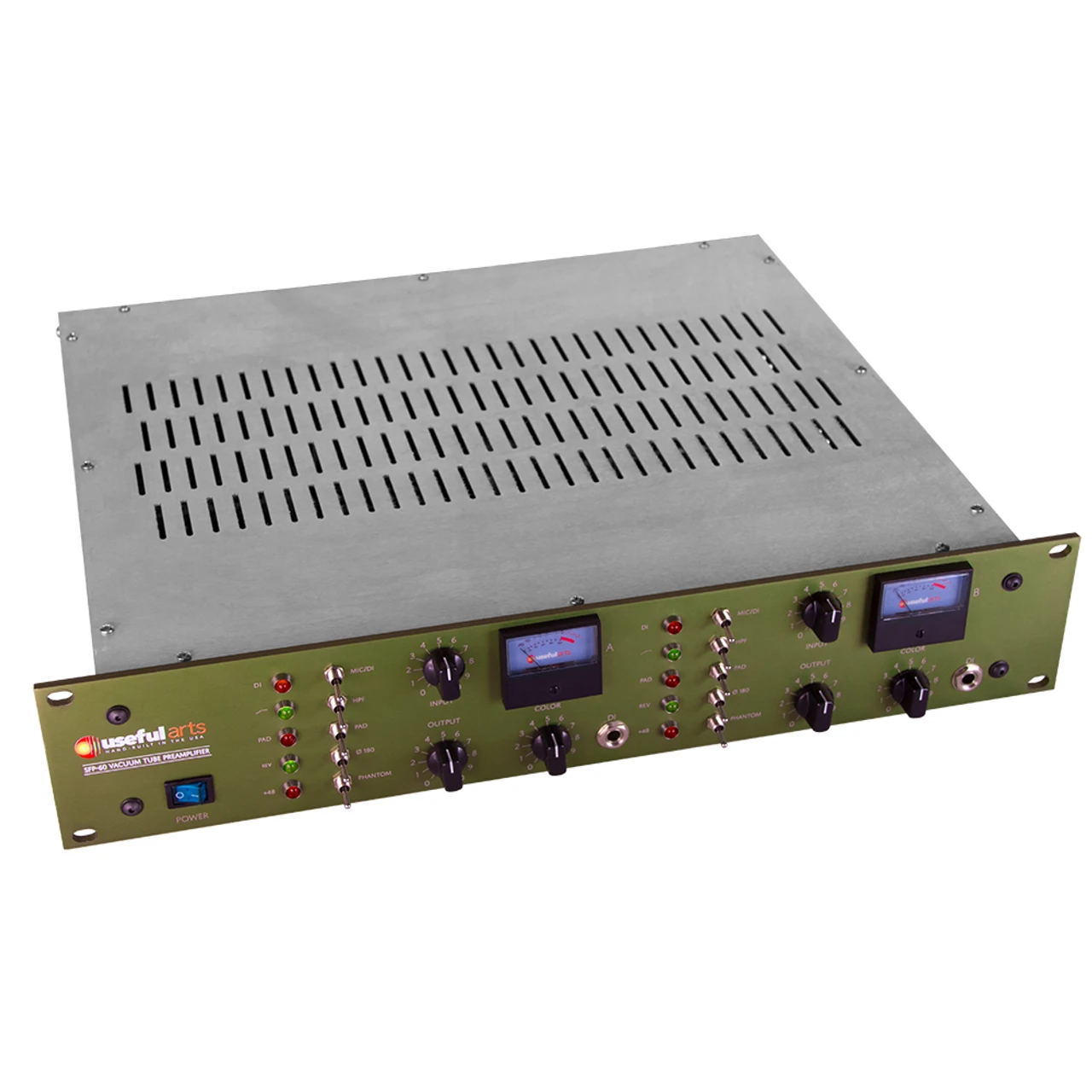 The SFP-60 is a two-channel, full-featured all-tube mic pre designed to make microphone signals pop in a mix without the need for other enhancement. We view the microphone and the preamplifier as a single unit – the signals coming out of a microphone are useless by themselves, and we only know what the microphone is doing after the signal is presented by the preamp. It seems a shame to use a great microphone and never hear the majesty of its sound, so we designed the SFP-60.